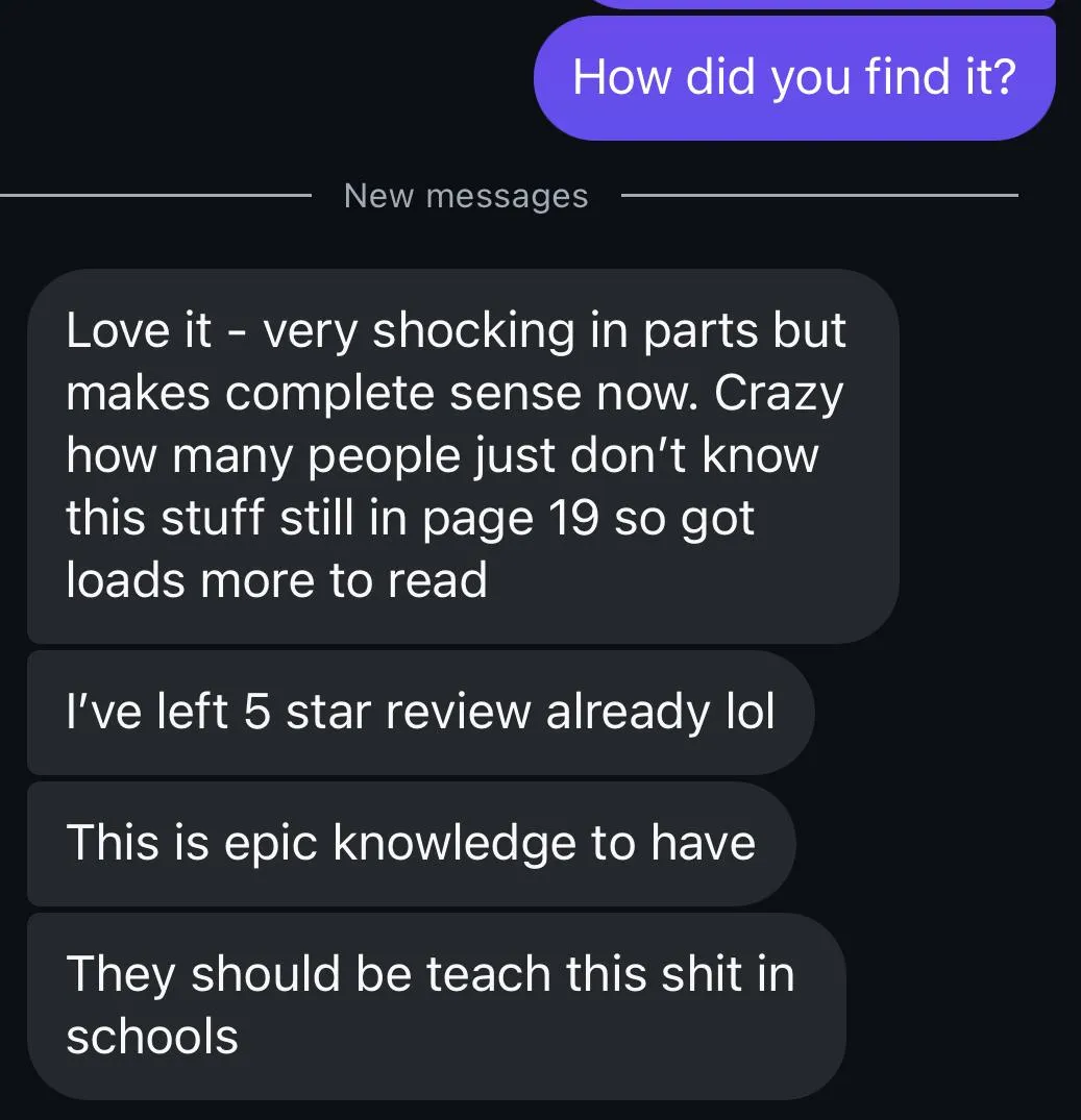 "This was shocking in parts! I just thought it was all mine on my banking app but now I know" - Amelia J (NY, USA)